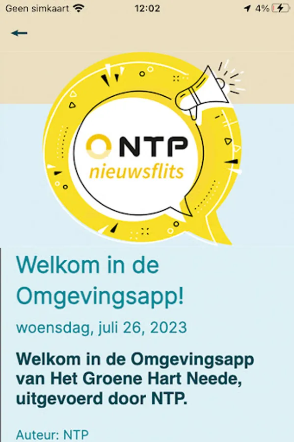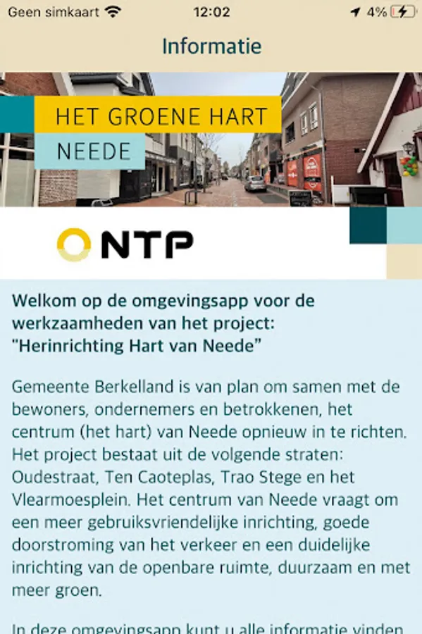 In this app you will find all information about the activities of the project 'Het Groene Hart Neede'. Important project information, the latest schedule and contact information are displayed . You can also leave questions, comments or complaints related to the project on this app.