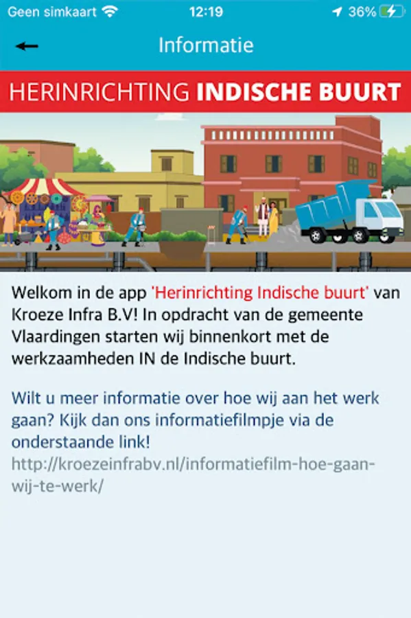 In this app you will find all information about the activities of the project 'Refurbishment of the Indian Neighborhood' of Kroeze Infra BV. Important project information, the latest schedule and contact information are displayed . You can also leave questions, comments or complaints related to the project on this app.