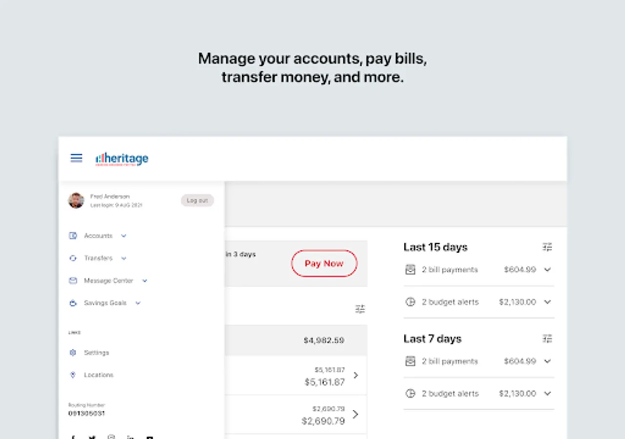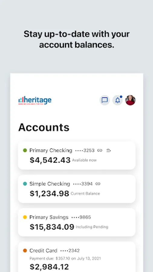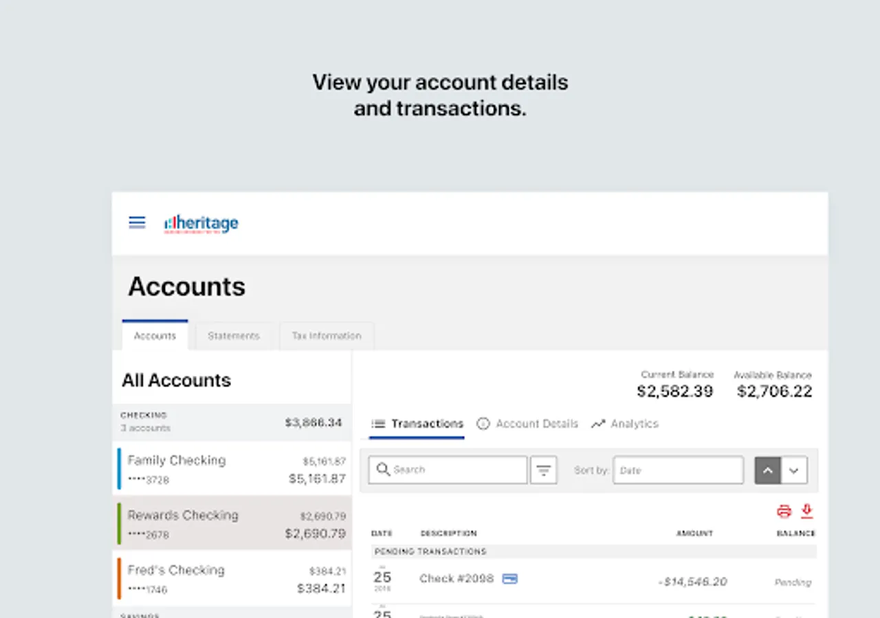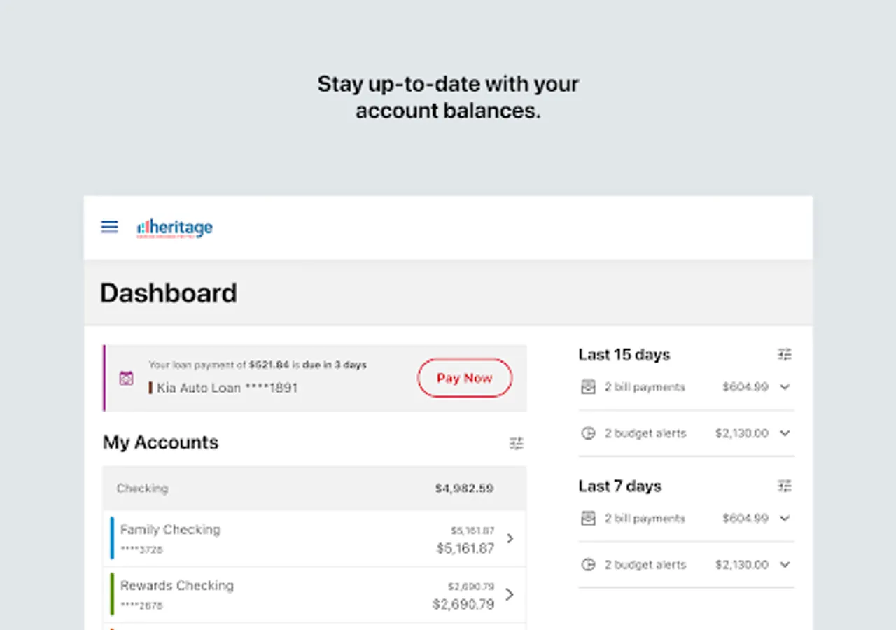 Heritage Federal Credit Union Digital Banking allows you to conduct many of your most common banking transactions while you're on the go with your mobile device!