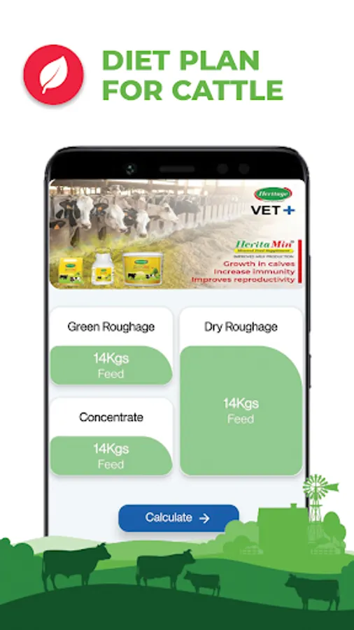 "Heritage Vet +" is a one-stop solution for milch animal management that covers all important aspects related to best practices in veterinary care and dairy management . These practices will be helpful to increase the income of dairy farmers through the quality and quantity of milk production.