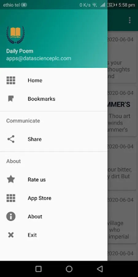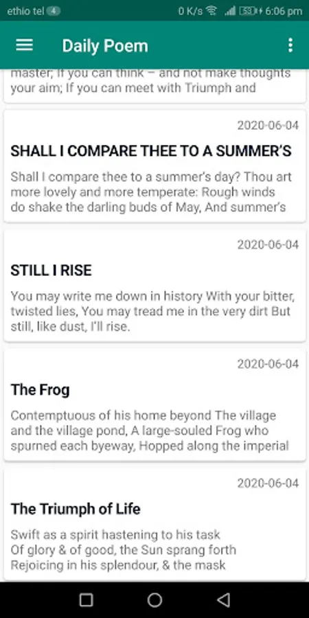 Daily Poem is the app of art that provides you with sharing own poems as fast as and free and allowing other people to read your poetry. Poems and Poets are waiting for your magical words. Easily, you can write and read poems with Daily Poem.