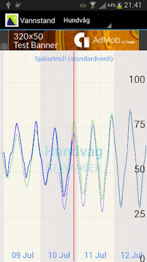 Har man nett-forbindelse hentes og vises siste observerte vannstand for et gitt antall timer. Hentingen kan gi noen sekunders heng før tegningen begynner.