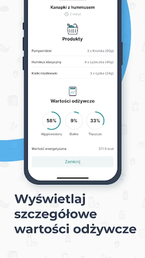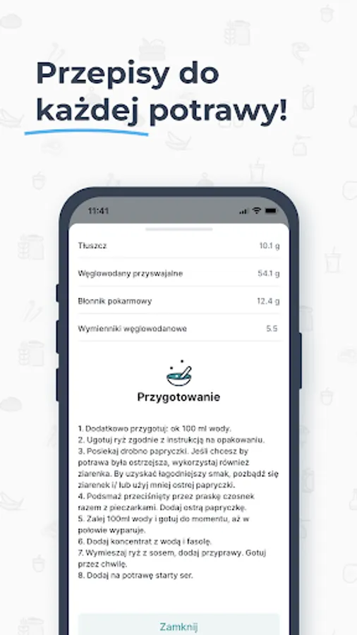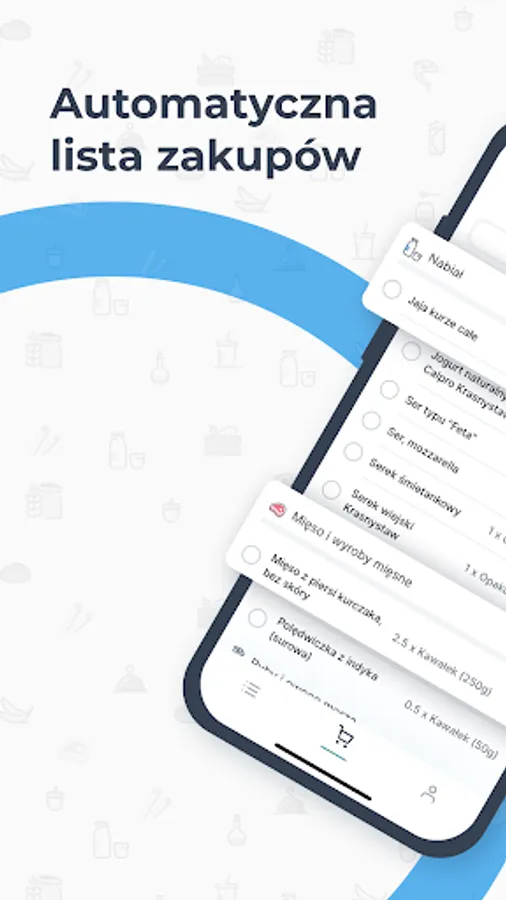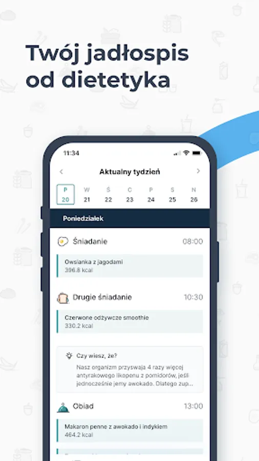 Install the application today and gain access to the diet developed by your nutritionist. Thanks to the dedicated Kcalmar Patient application, you will gain access to the menu prepared by your dietician along with tips and recipes, all presented in an aesthetic and modern form. In addition, you do not have to worry about preparing a shopping list. The app generates the list automatically for you!