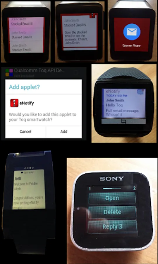 • Smartwatches eNotify offers extensions for Android Wear, Sony SW & SW2, Pebble & Toq