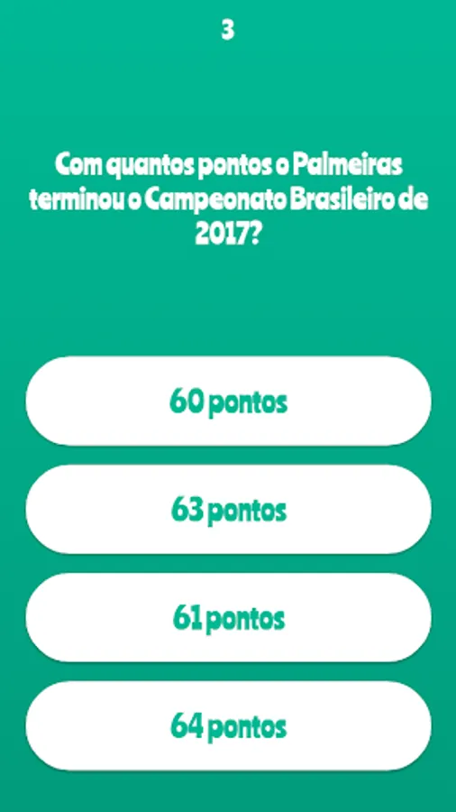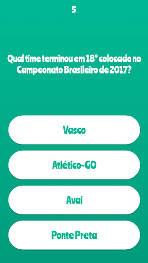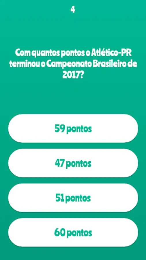 More than 230 questions about football and teams. Each round will be shown 10 random questions and at the end will show the result. As questions