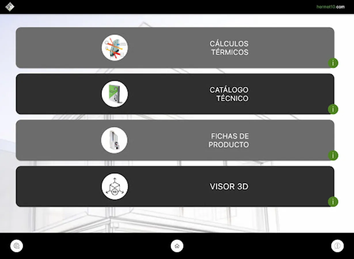 Hermet10 DocTec APP is a tool to always have the latest technical documentation for Hermet 10 windows. With this app you will have access to the latest revisions of the technical catalogue, product sheets, thermal calculator and 3D viewer.