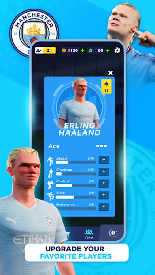 Be the manager of an official Man City Freestyle Academy and prepare all your football stars to be legendary freestyle jugglers! Attribute points trained become advantages in the league challenges!