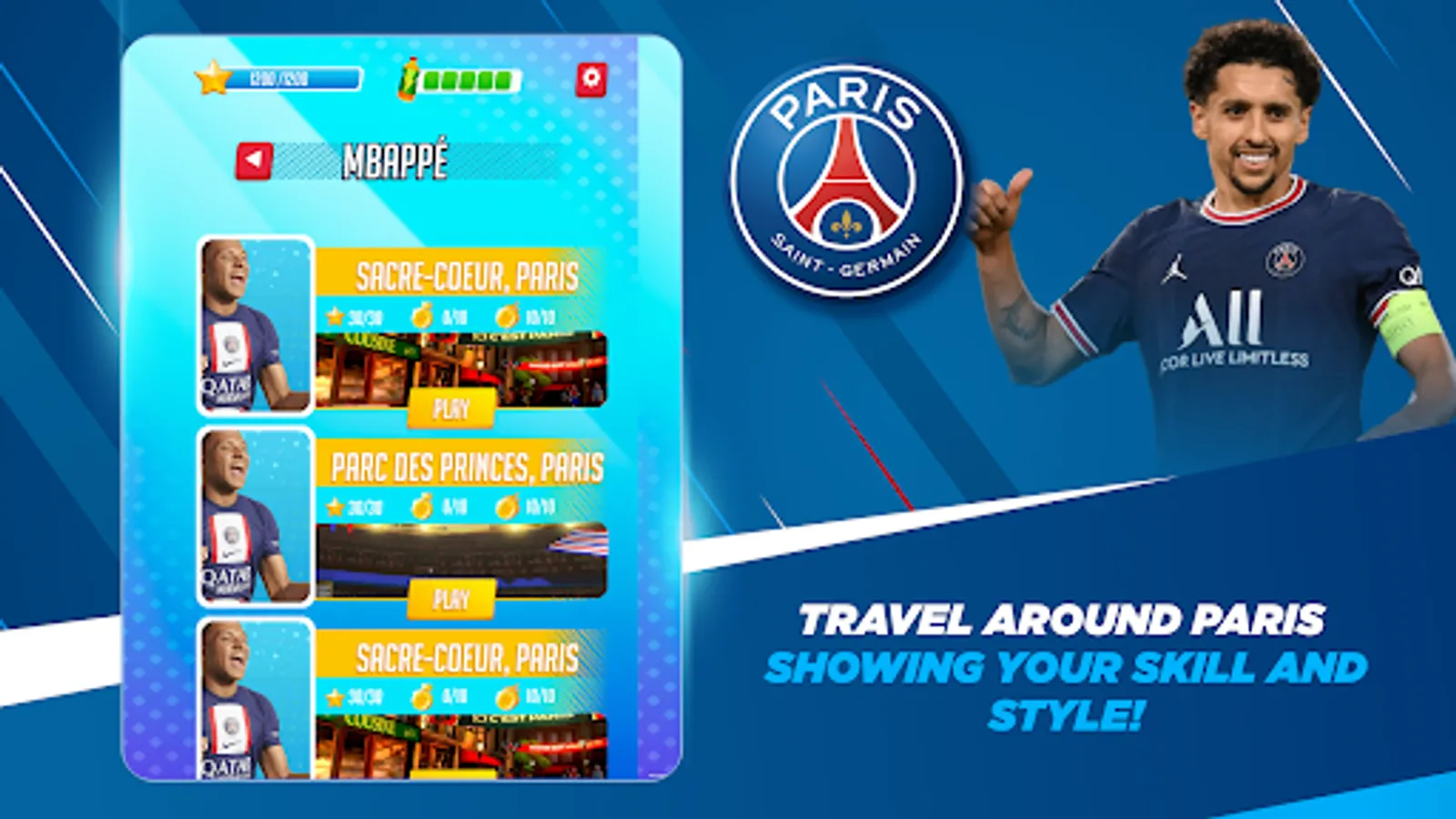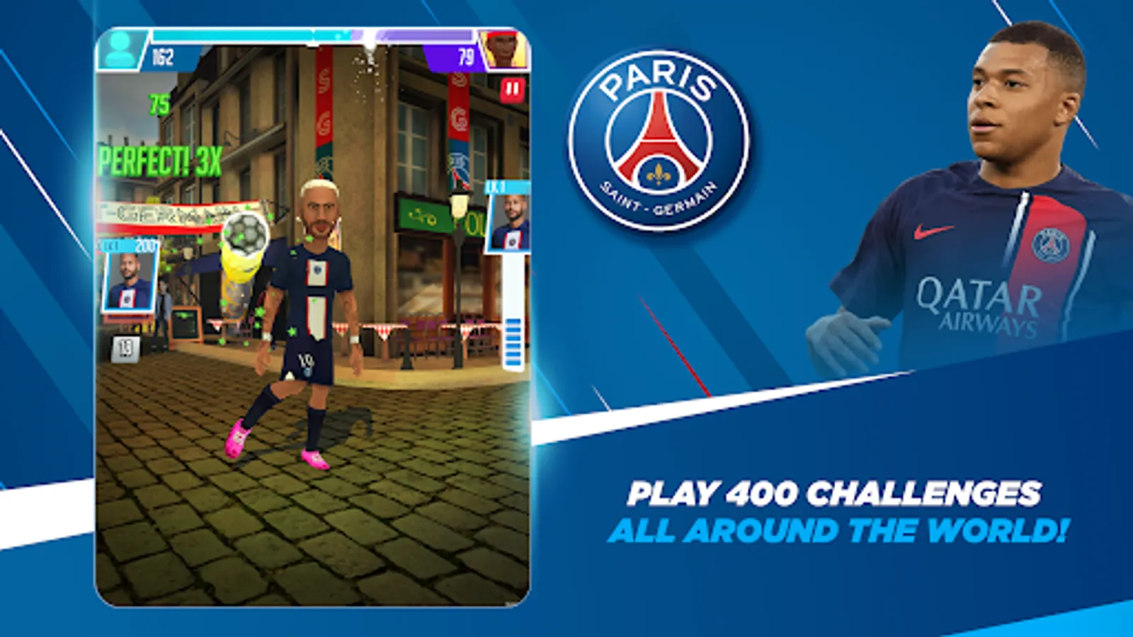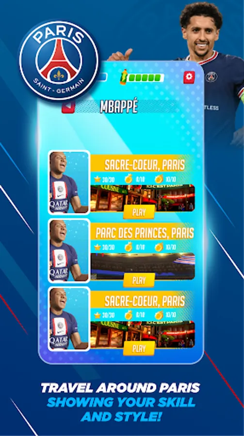 - Play as PSG stars in 400 unique challenges all around the world!