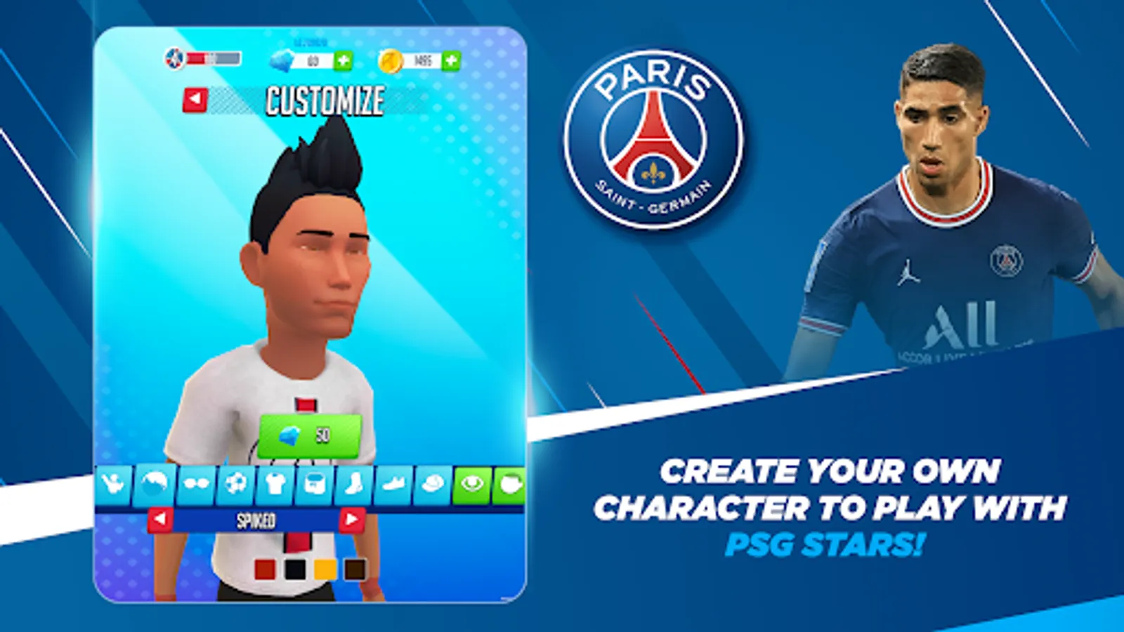 - Create your own character to play with PSG stars!