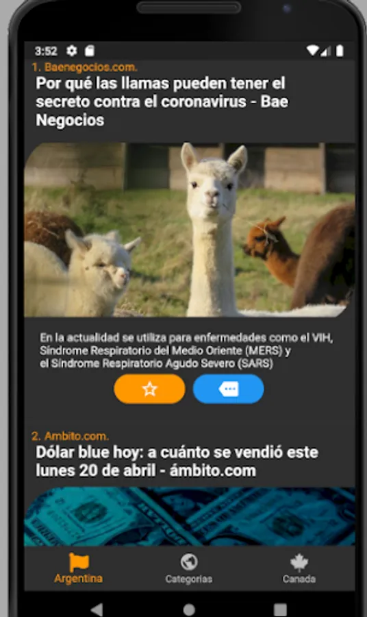 The headlines from principal newspaper from Argentina and Canada. I know that you don't want to read them in full