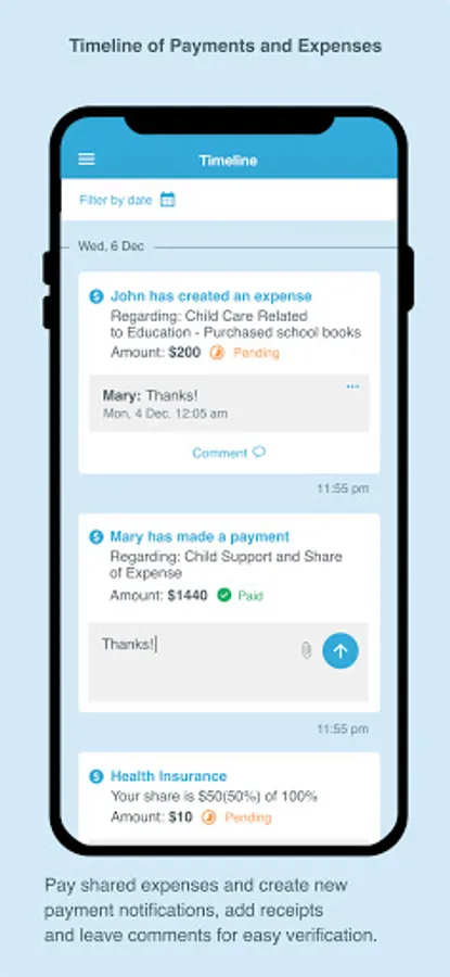 - The ability to handle receipts & comments and instantly share with a co-parent.