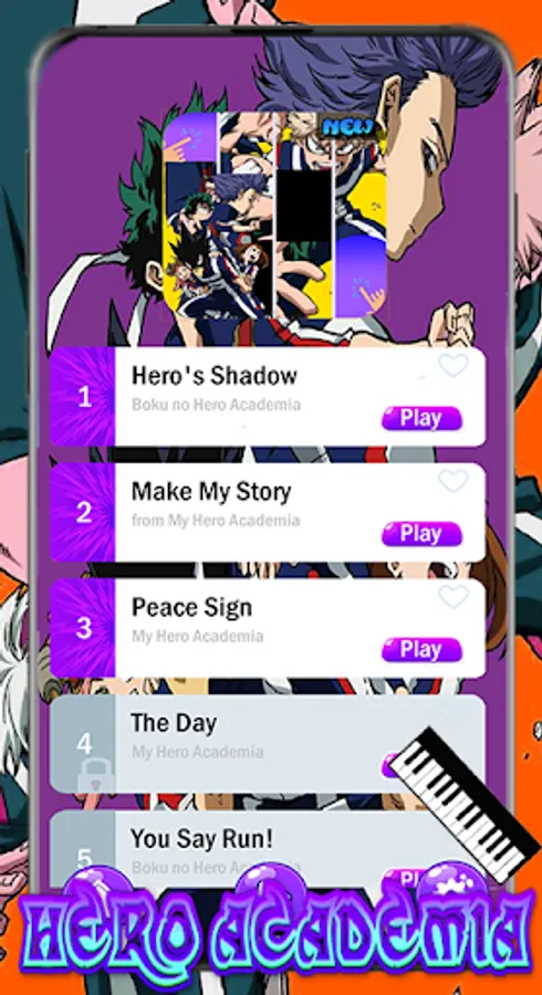 * Open all songs and enjoy the game Hero Academia Piano Tiles