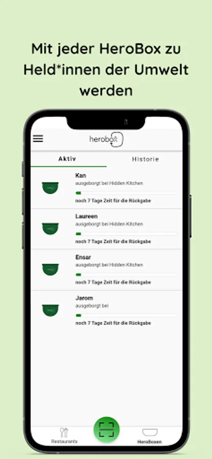 Zero waste is a lot easier than you think. In our app you will find all participating restaurants (and soon also cafeterias, supermarkets and many more) that use our HeroBoxes as packaging for meals and also act as return points. Numerous more HeroBox partners join every month.