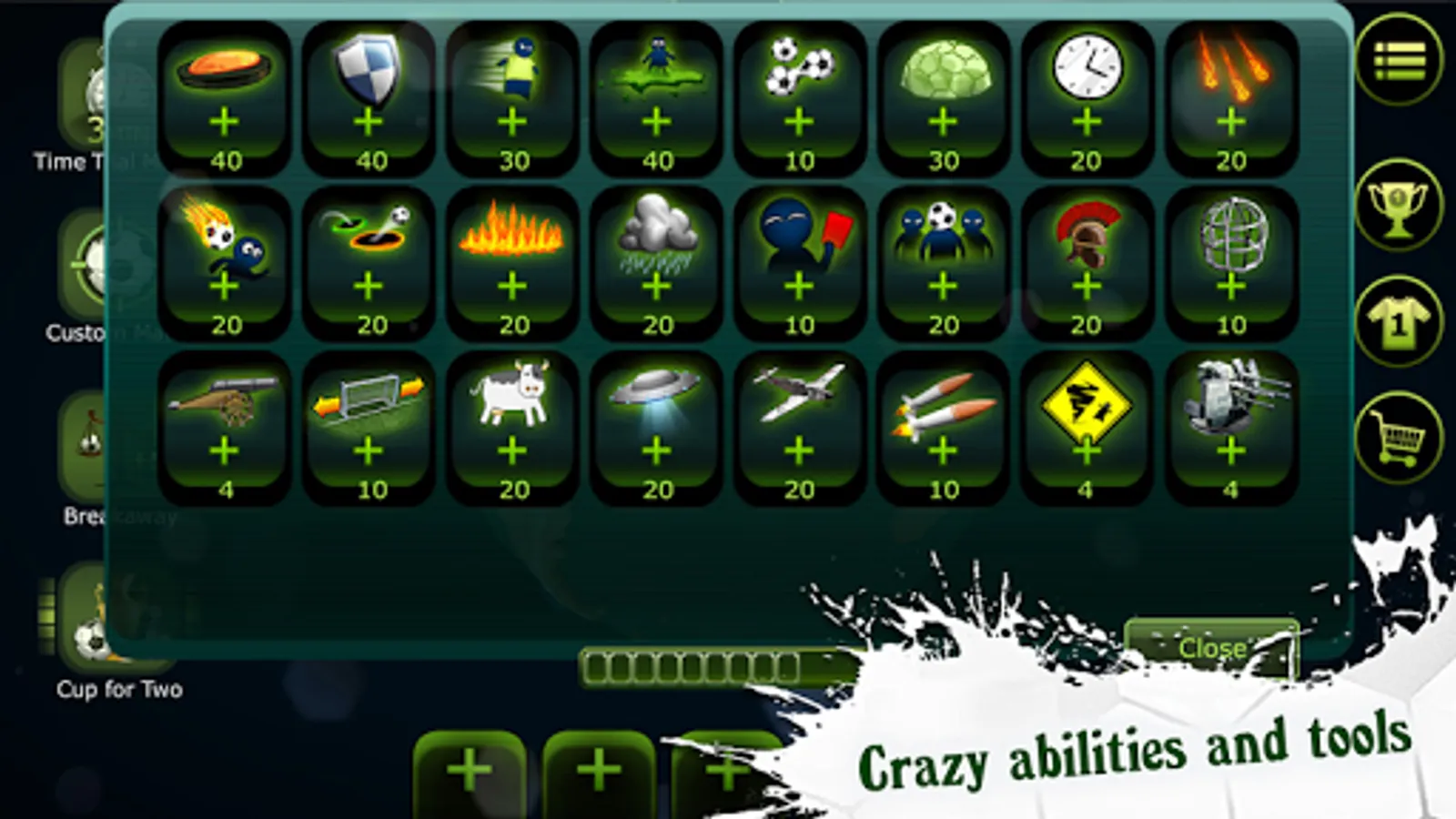 FootLOL lets you use mines, shields, aliens, cows, guns and many more cheats to decimate the opposing team and protect your players. Play against your friend or a AI opponent.