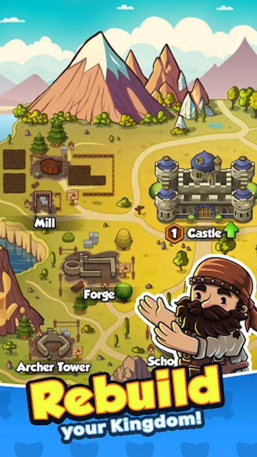 The story begins with the kidnapping of the kingdom's princess, leaving your heroes as the only hope. To save her, you'll start by reconstructing the village, collecting resources like wood and ore, and constructing buildings to improve your surroundings.