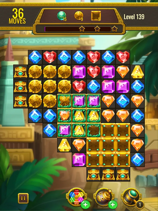- Maya vibes in every game aspect: jewels, chests, temple, rare treasures and music!