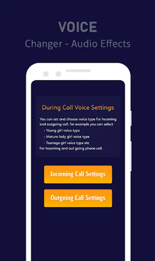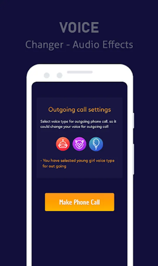 Phone Voice Changer - Voice Changer During Call App has multiple voices, which make it the best voice changer app on call in the world like - Voice Call App, funny voice changer, Female Voice Changer, Funny jokes phone, robot voice, celebrity voice changer, male voice changer, girl voice changer, etc.