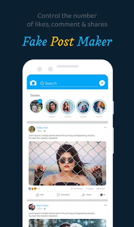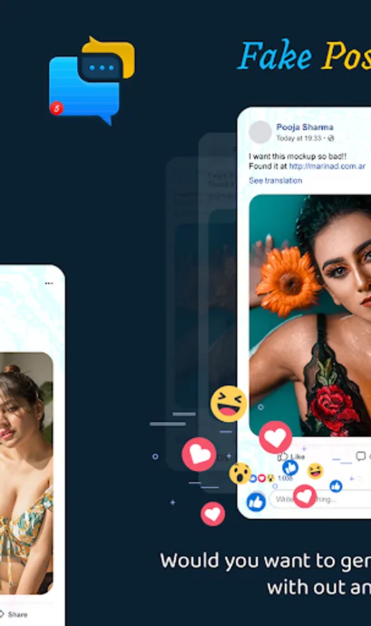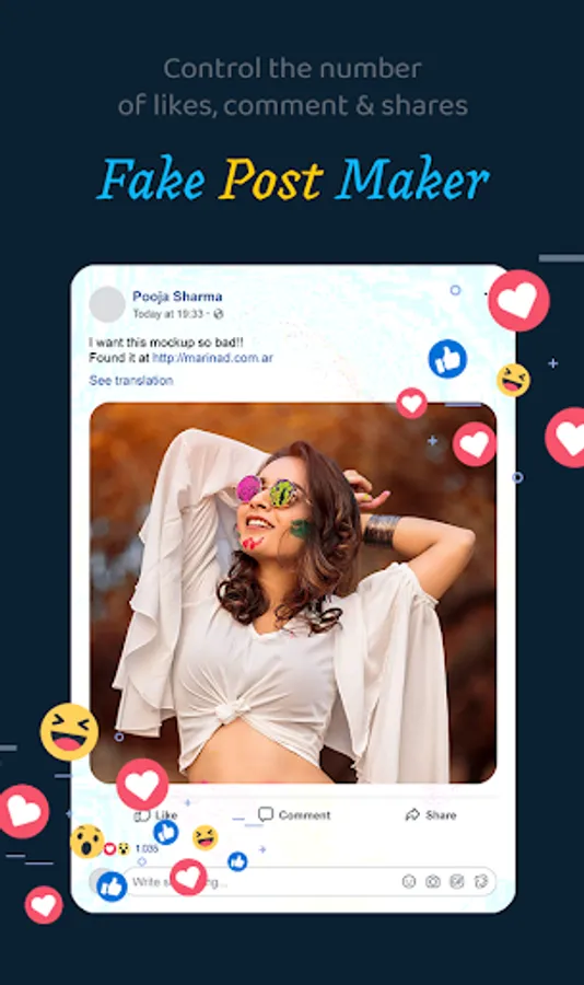 Create fake facbok posts and add fake likes and comments using our Fake Post Maker For facbok app.