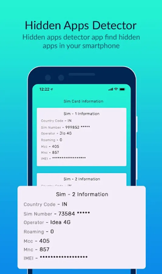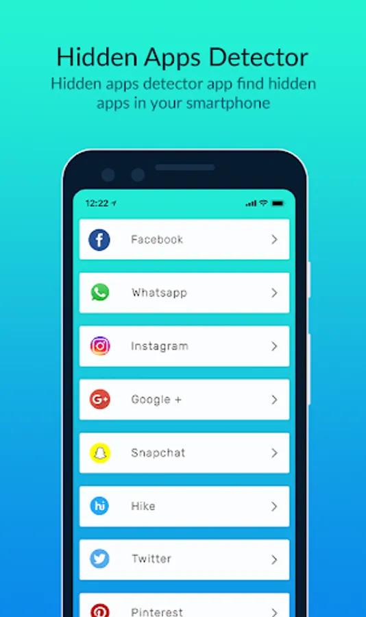 Hidden apps finder in android mobile has main feature to find hidden apps or to scan overall apps of your mobile phone. you can scan both system apps and user install apps. this application will help you to find hidden apps or help you to detect hidden apps. we show all apps install in your mobile phone from that you can also detect spy apps or find spy apps in your mobile because all apps will be shown to you. so use it as hidden spy apps detector.
