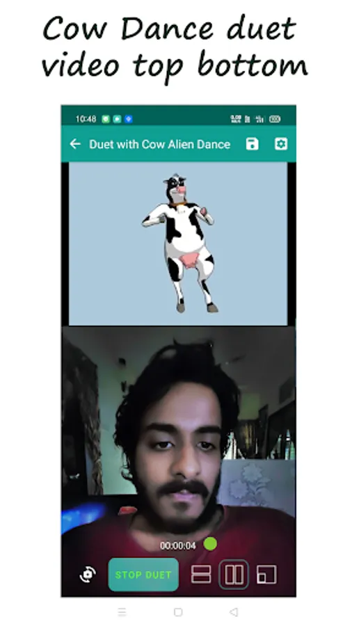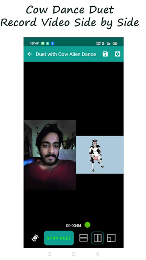 -Duet video maker app with the cow alien dance