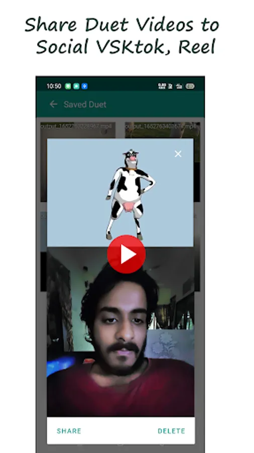-Share duet short videos on your social media handles featuring short videos for i.e, tiktok, vskit, reels, likee and on your status app etc
