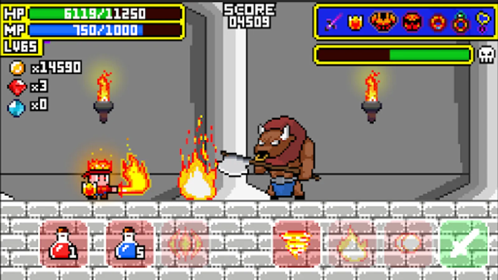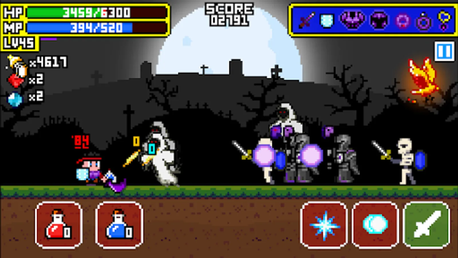 In this epic Action RPG, you'll face the most powerful monsters drawn in 8 and 16 bit pixels, snakes, bats, ghosts, skulls, wizards, ice monsters, orcs and many others.