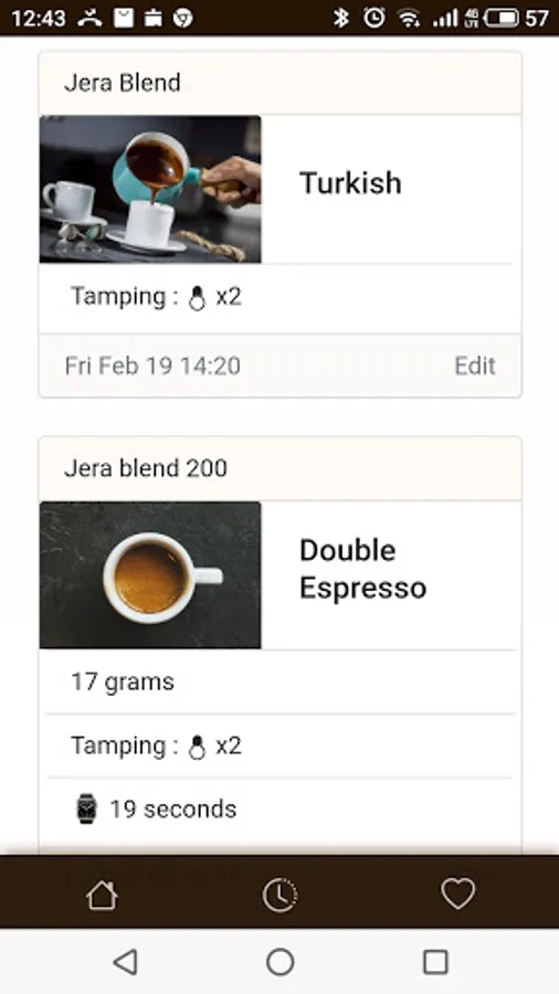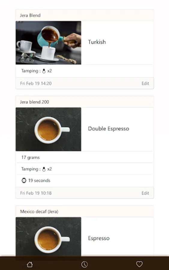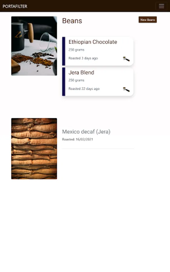 Portafilter is a simple Espresso tracker that helps you to record your daily coffee doses and get persistency. Save the beans you have, the country of origin, roast level, brewing method, and more!