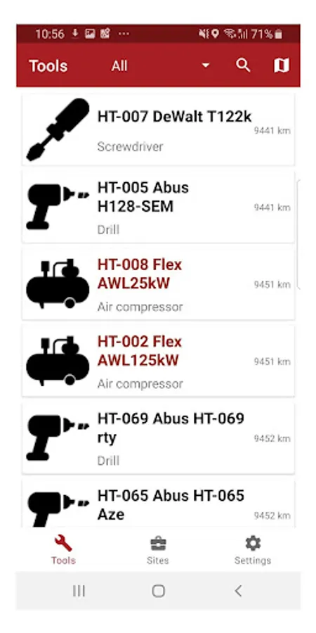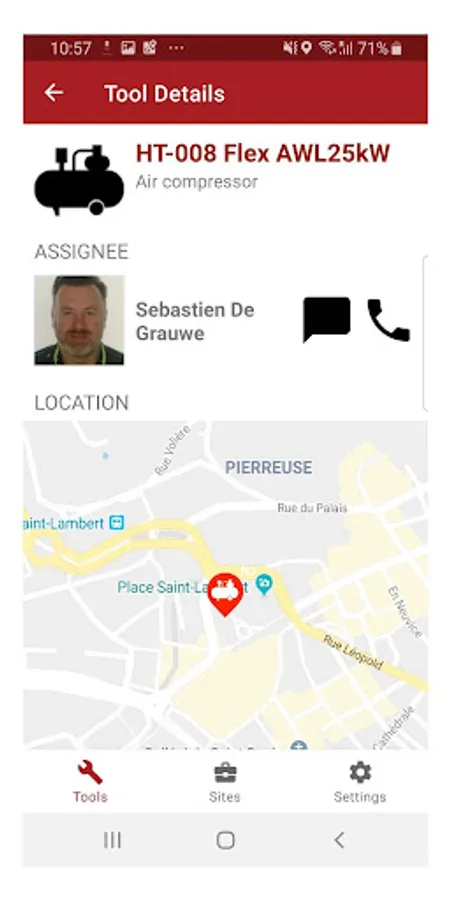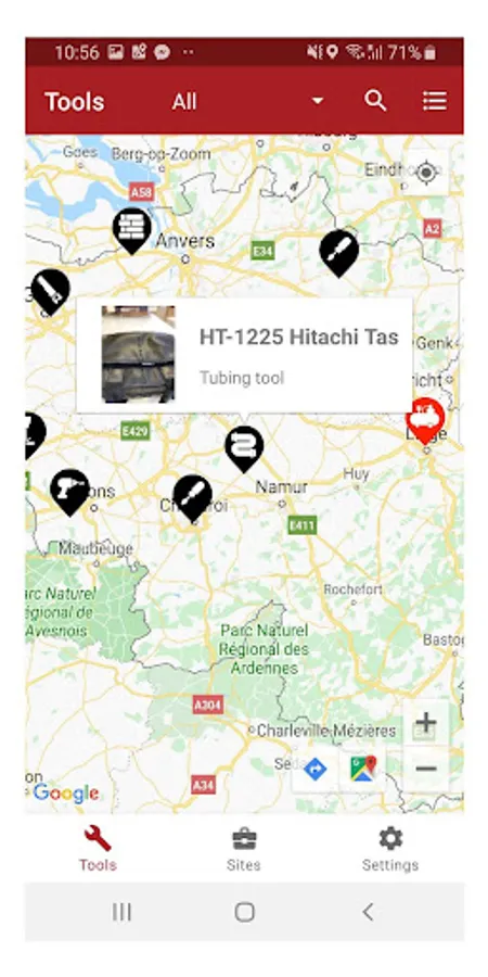 The mobile application allows the field worker to detect the tools around him/her and to link the GPS position of the smartphone to the tool, so that this information together with the ID number of the tag (UID) can be sent to our platform. This way, the information is available in the form of reports or visual information on the tagged tool's map.