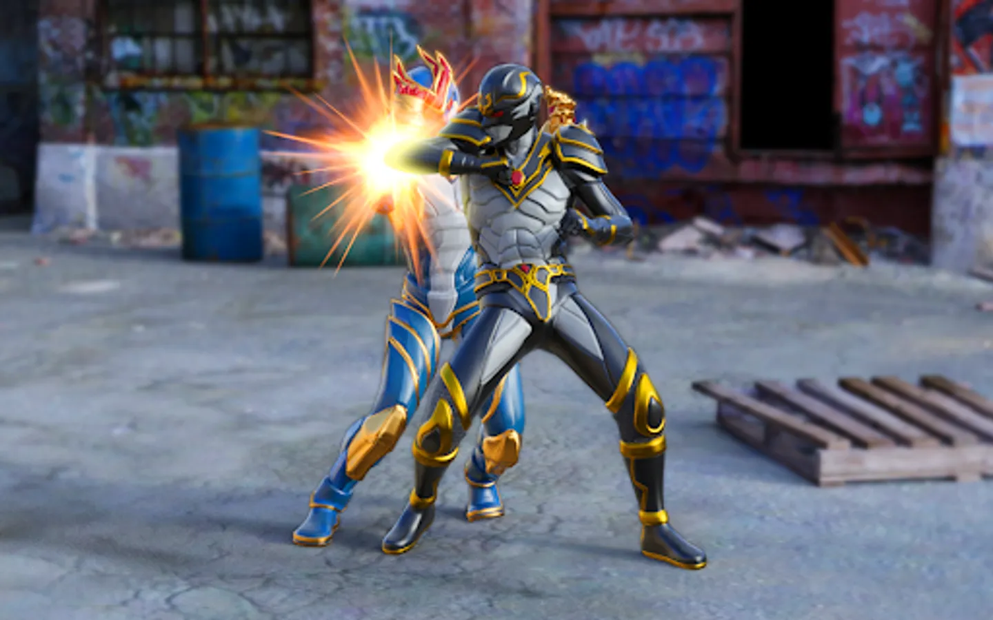 It's simple, we made it in the classic arcade style. Just like in your childhood memories of superhero fighting games. Tap the button to have the robot melee attack - punch and kick. Tap the attack button to choose different devastating weapons from the ground. Combine jumps and blocks to become the most agile warrior of hero games! Try to win in this battle of survival. Earn points for every successful street fight. and unlock improvements for your future ranger fighting heroes!