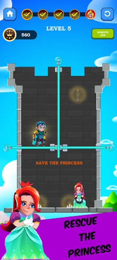 If you are looking for adventurous Rescue game then this Hero war game is for you. The princess is trapped in an enclosure space waiting for you to rescue him. You are permitted to pull out one of the pin each time. Be aware of the dangerous obstacles. Rescue princess & win hidden treasures. Have fun Pin Pull Rescue!
