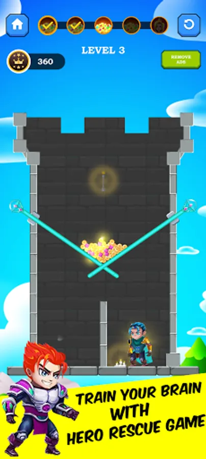 Hero wars Rescue game presents you many challenging missions. Help the man find his love. Hundreds of fascinating pull the pin puzzles not to be missed. If you loved gardenscapes then you will definitely love this fun and adventure filled hero rescue puzzle game.