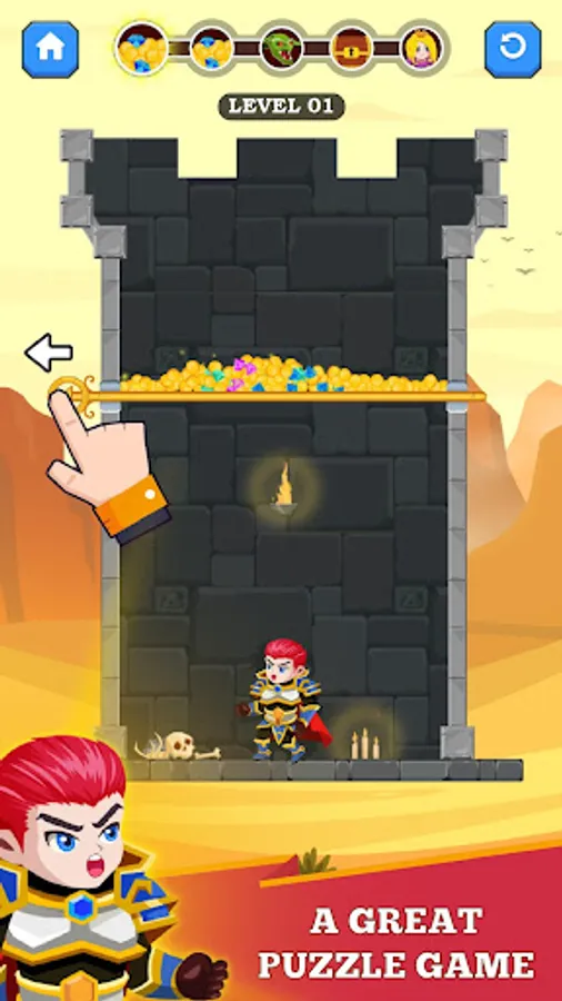 Various missions await you in our pin rescue game. Kill demons, kill poisonous spiders, pass lava, search for treasure, let’s pull pins to save man or become a hero, save the princess. Show your wits by solving hundreds of challenging brain puzzles.