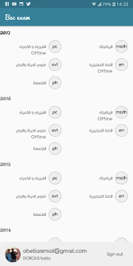 It is possible to access a number of national exams for the scientific and literary people of mathematics, physics, life sciences and land, as well as philosophy and English. The application helps to train on these exams. Not only are these exams accompanied by correction, you can easily access them.