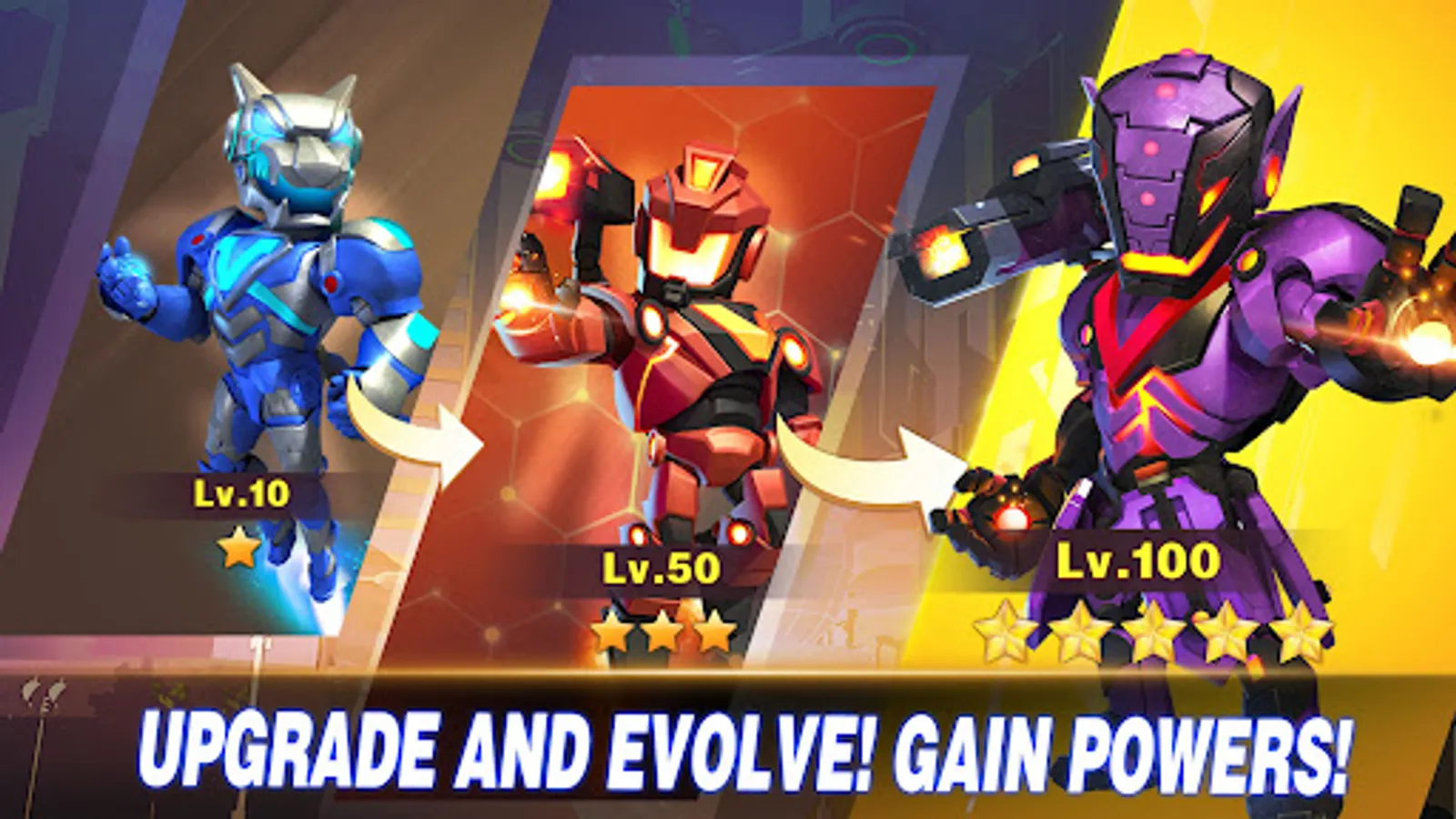 Train your squad in hero arena, evolve them from ordinary, rare, epic, legend to myth!