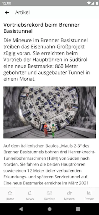 The app offers up-to-date stories from the global world of mechanized tunnelling.