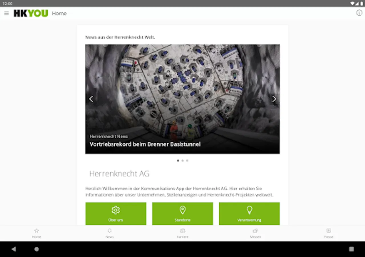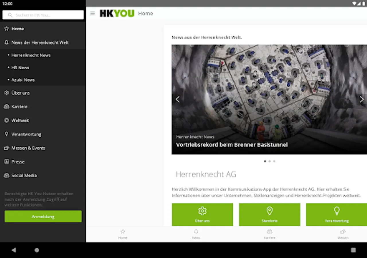 HKYOU is the company app of Herrenknecht AG, the leading premium provider of comprehensive technical solutions in mechanized tunneling. Ever since the company was founded in 1977, Herrenknecht has been the first point of contact for underground infrastructure projects all over the world. For all diameters, in every geology and in all areas of application - railway, metro, road, supply and disposal, pipelines, hydropower, mining and exploration.