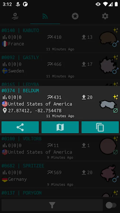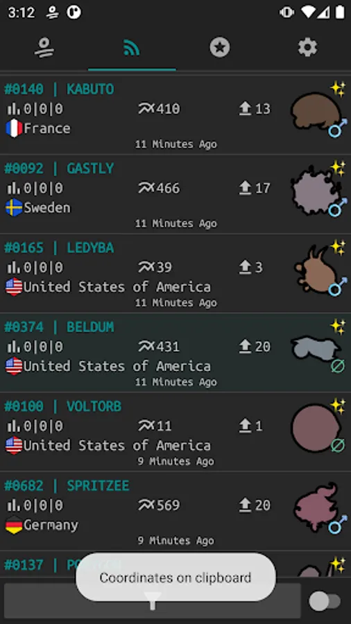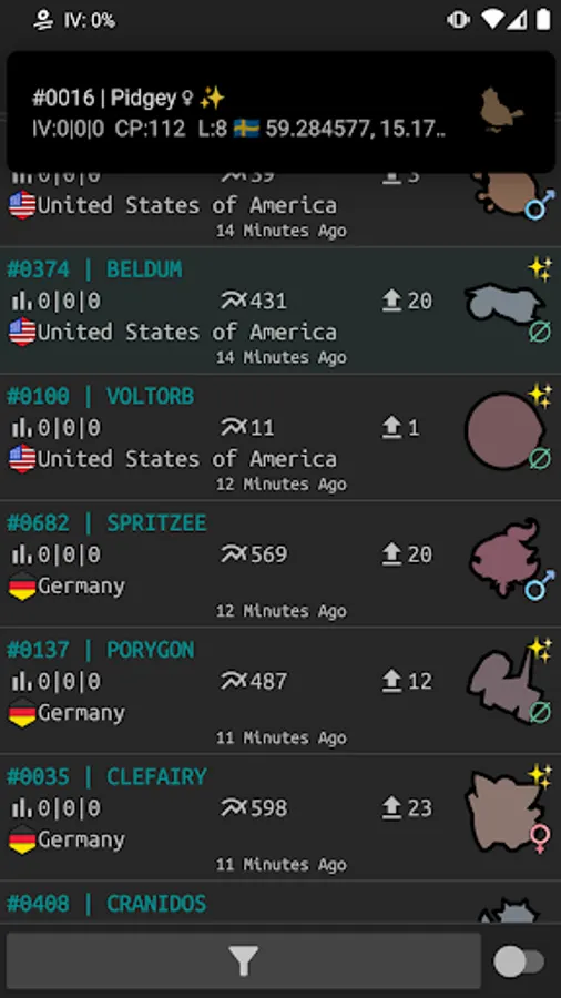 Real-time coordinates to capture wild species with IV 0%.