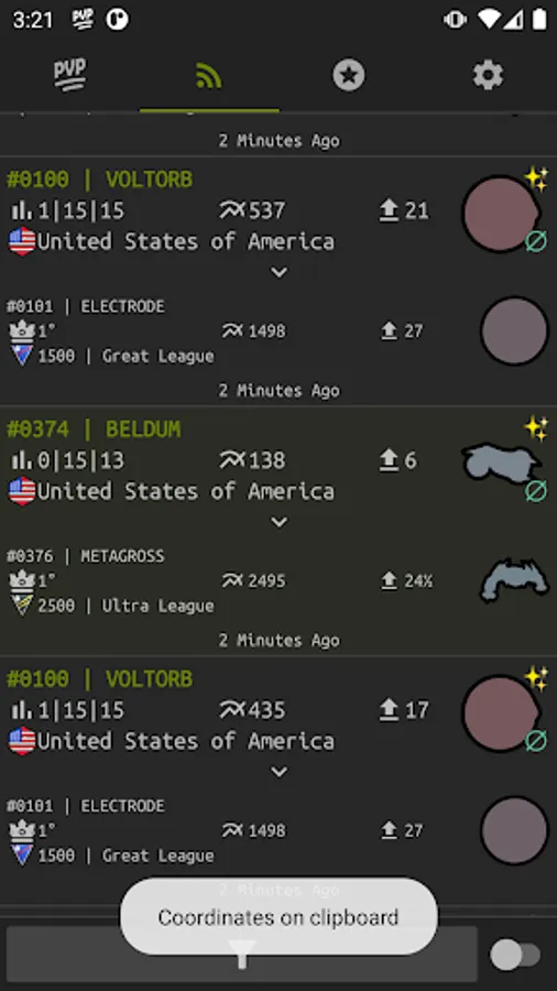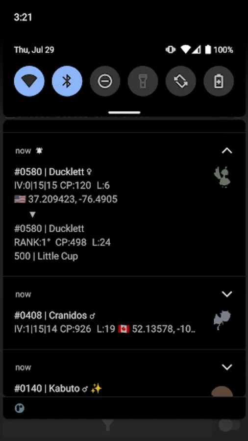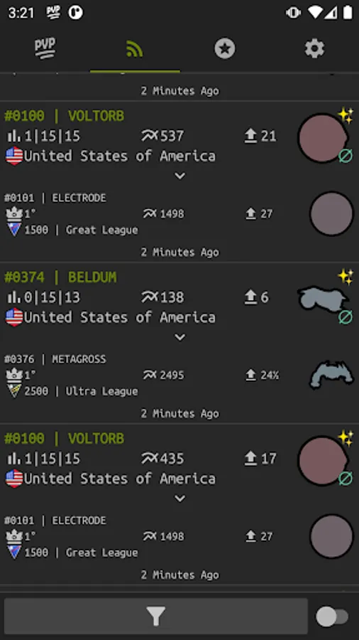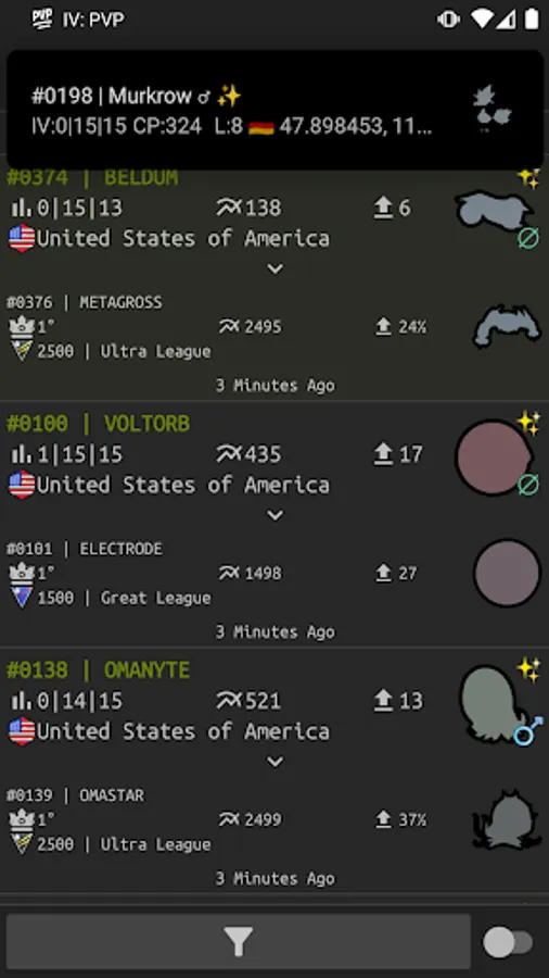 Receive notifications in real time to capture the most recent wild species that have an ideal IV for PVP