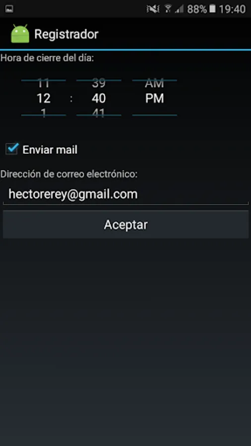 Event registration can be done at the touch of a button on the screen. Then, at the indicated time, an email will be sent to the address configured with the summary of the day.