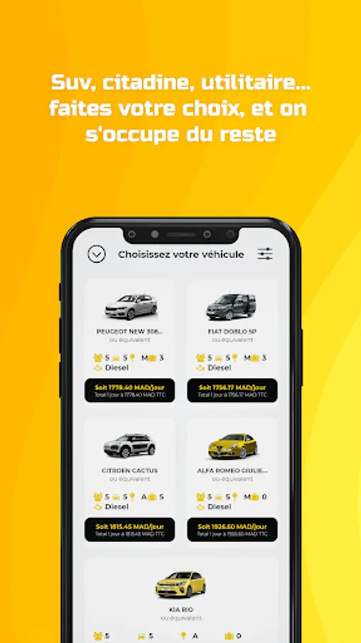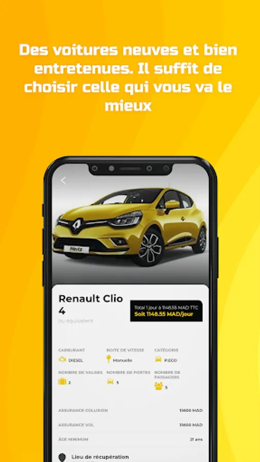 Depending on your needs, you can opt for a vehicle. The application allows you to reserve the car or utility of your choice at the desired agency. All you have to do is go to the counter to pick up your vehicle during its opening hours.