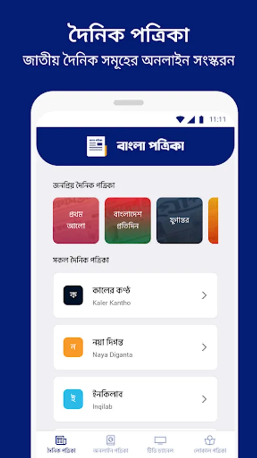 Find out the popular Bangladeshi news papers in a single app. Easy to ready and friendly UX.