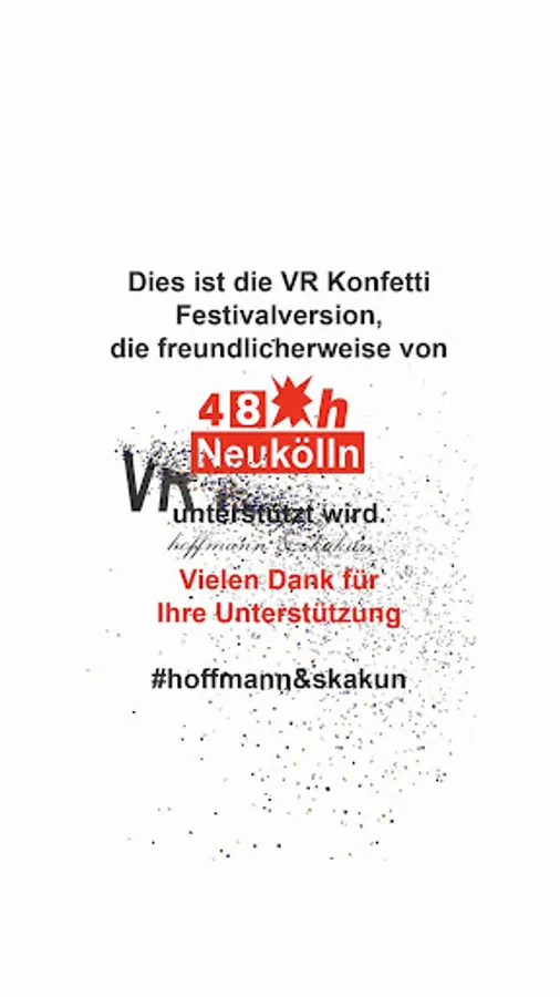 With VR Confetti, we are presenting an app for mobile devices for the 48-hour Neukölln Festival, in which houses and objects symbolically dissolve in confetti.