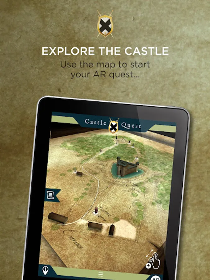 Use the 3D GPS map to find the characters around the castle and grounds. When you reach a trigger post, tap the AR button, then point your phone at the central image on the panel to see a character appear.
