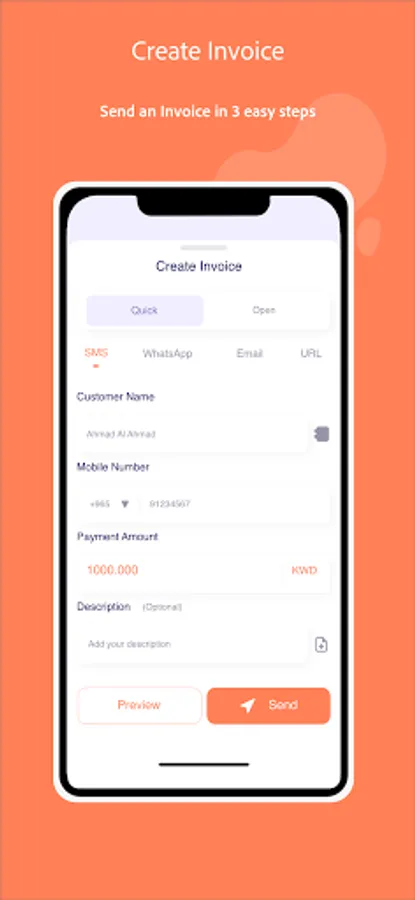 customization payment amounts to be sent via text, WhatsApp, or email.
