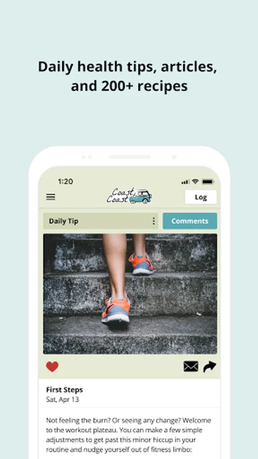 (NOTE: Coast to Coast syncs with the web version through your wellness program. Because this is not a stand-alone app, you must register on the web version before you can use it. Contact your wellness program manager with questions.)