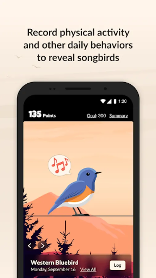 Each day you record physical activity plus other health habits, a new colorful songbird alights on a wire.