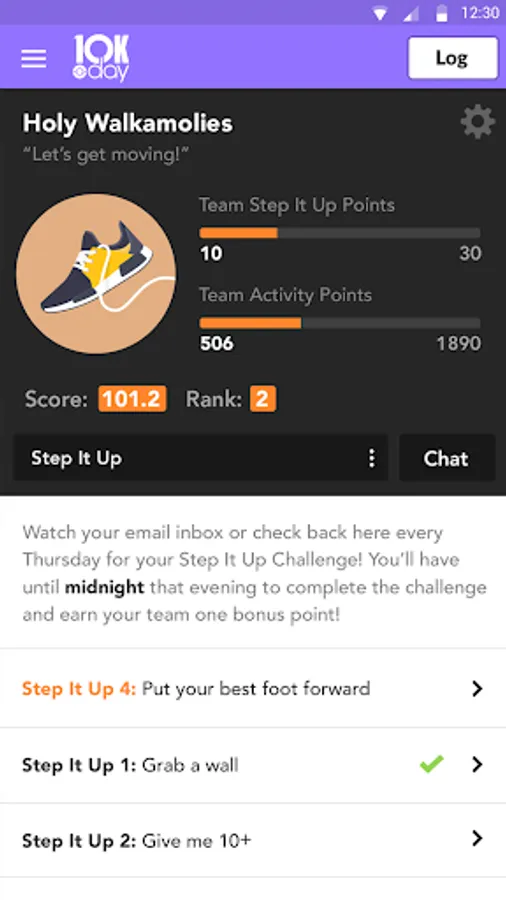NOTE: 10K-A-Day syncs with the web version through your organization’s wellness program. Because it’s not a stand-alone app, you must register on the web version before you can use this. Contact your wellness program manager to see if your organization has the 10K-A-Day wellness campaign.