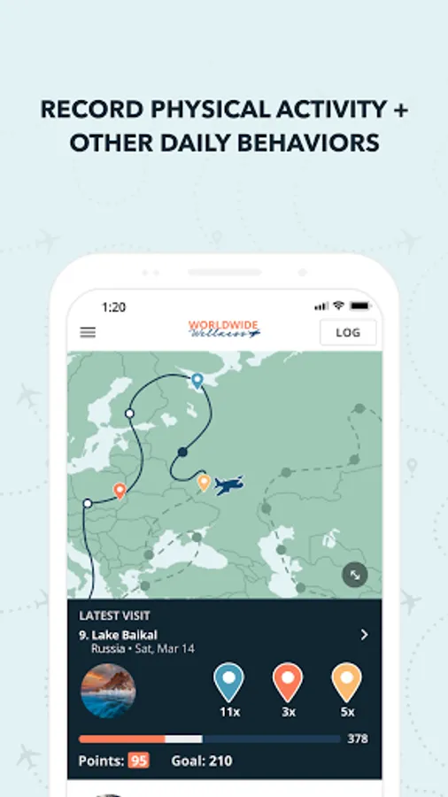 • Travel around the world, stopping at amazing hot spots as you record health behaviors