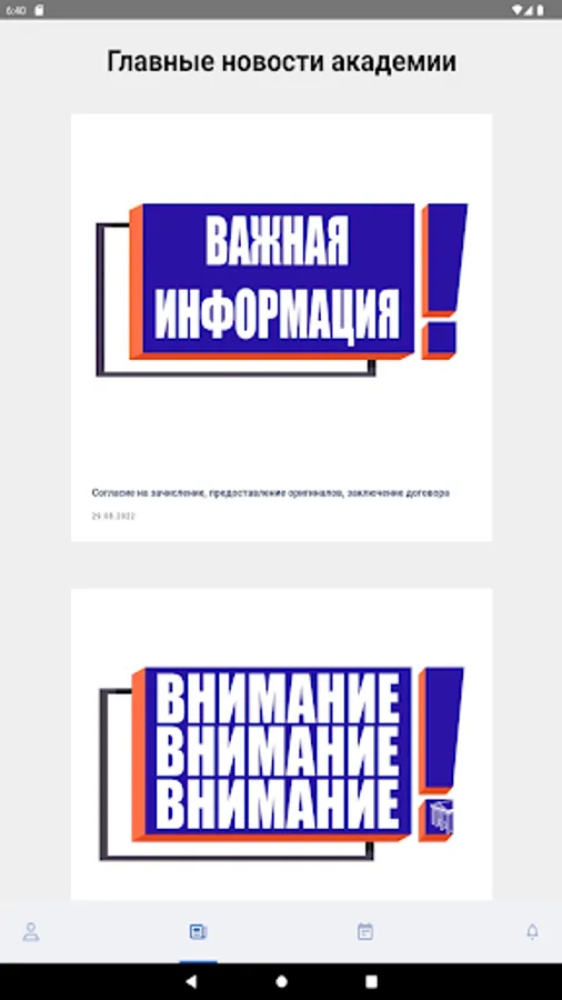 The application is intended for students of the Russian Open Academy. The application allows users to quickly receive up-to-date data on the study schedule and its changes, as well as news from the Academy website.