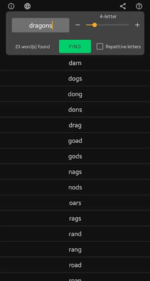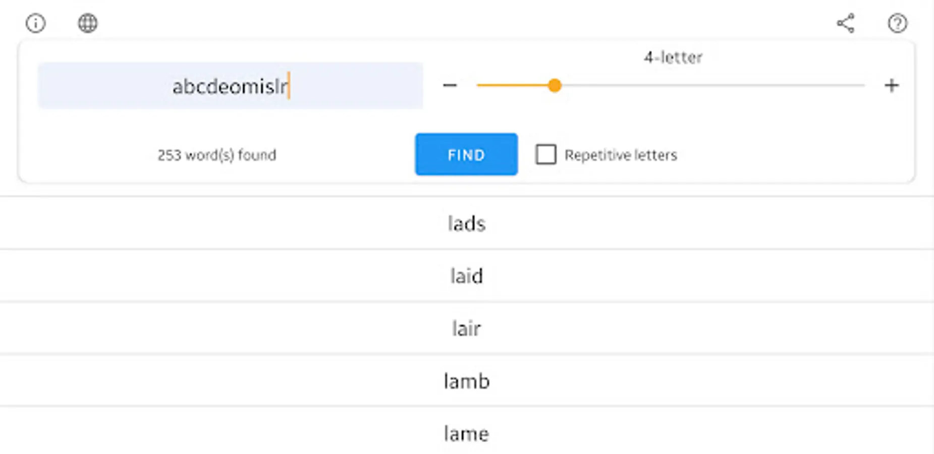 Word Finder can help you find English and Persian words by choosing its letters and it will find all words containing those letters.